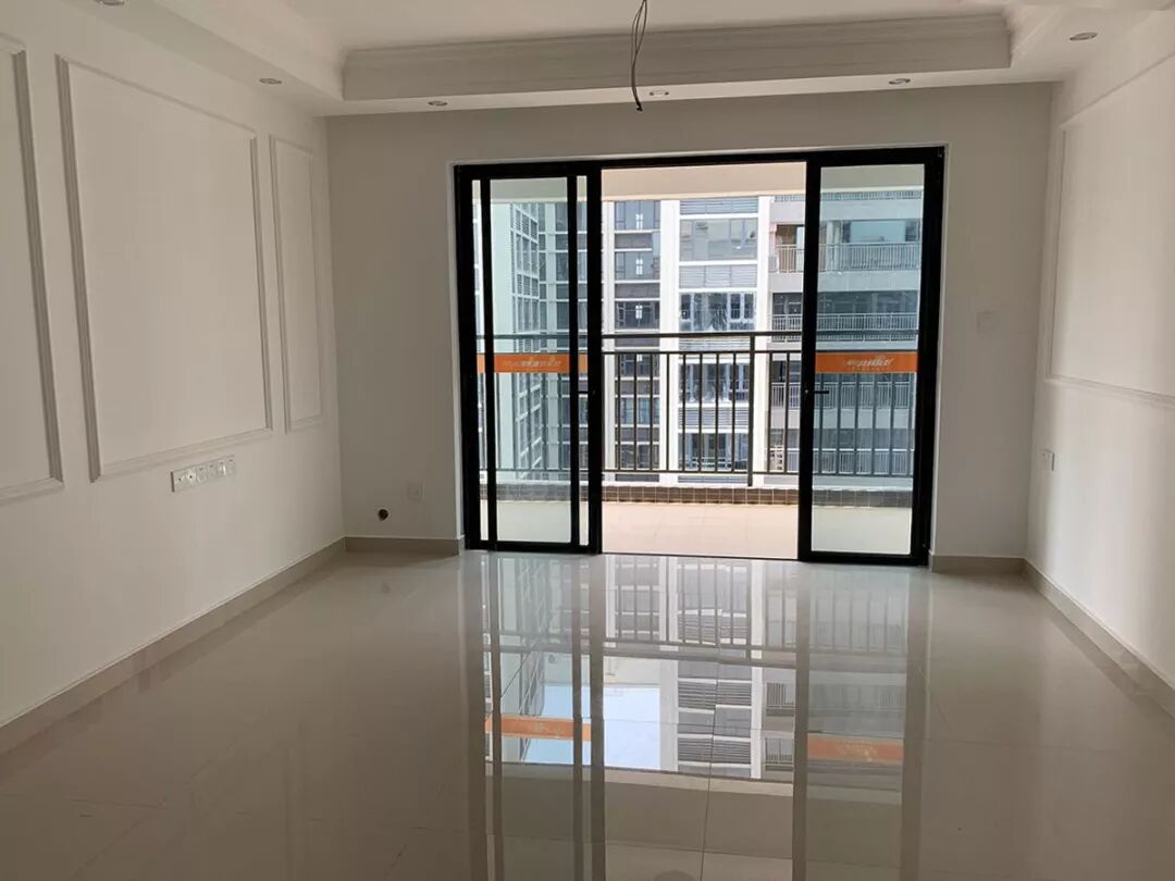 户型图上,主卧带有西南向的阳台,高层可看到岐江河;另一边飘窗朝小区内。而实际上,交付标准的阳台是封起来。