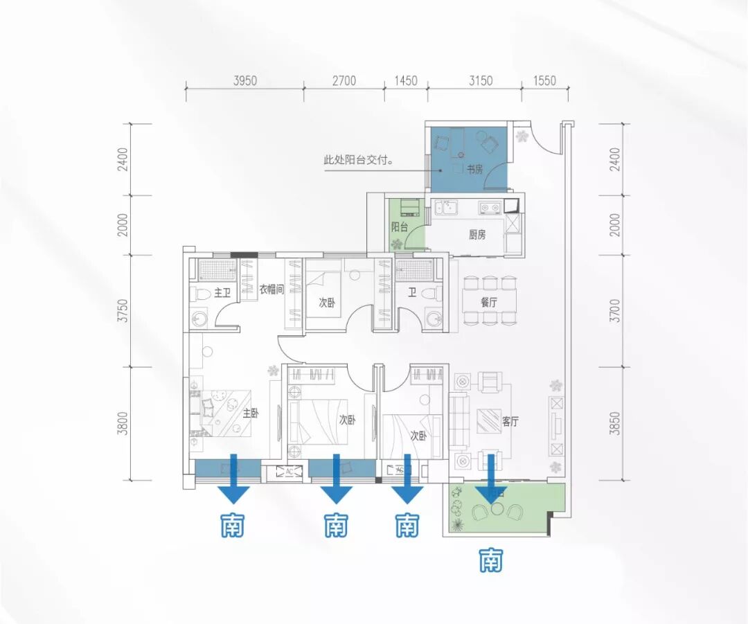 其一,书房、飘窗全赠送,双阳台半赠送;