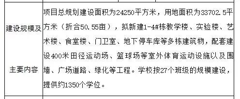 其中,学校按照27个班级的规模建设,提供约1350个学位。此外,项目计划将在2020年12月动工,计划工期28个月,预计竣工日期为2023年4月。
