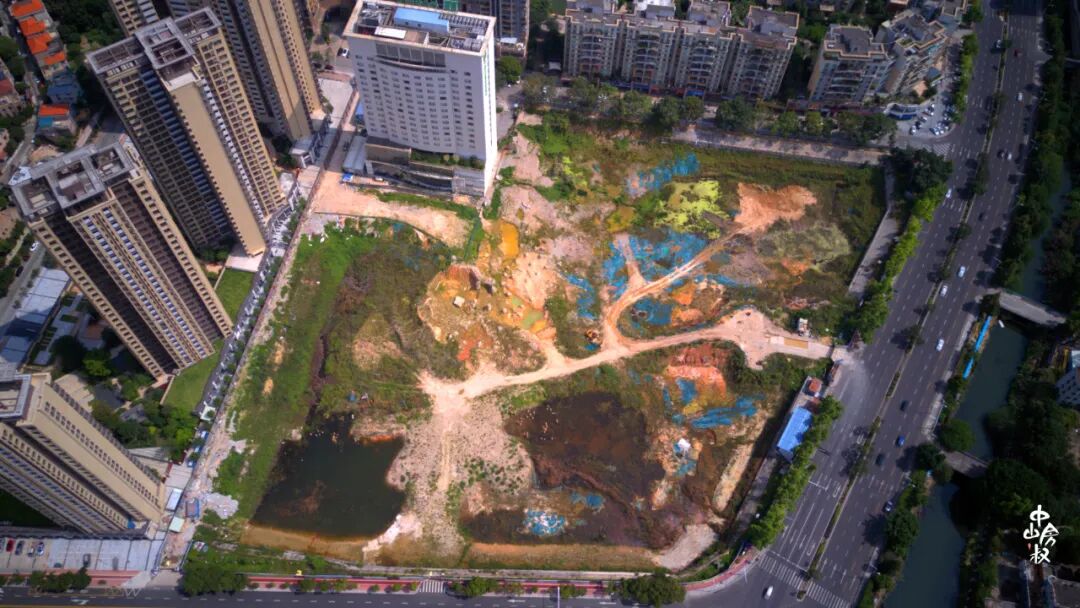 从航拍图可以看出,地块已预留停车场空间,工地内还有部分积水,什么时候开始集中动工,暂时无法确认。
