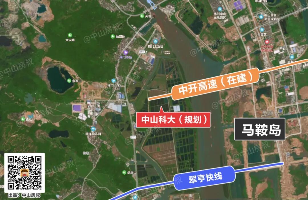 根据以上透露的信息,中山科大的规划位置就在中开高速进入横门后的南侧位置。