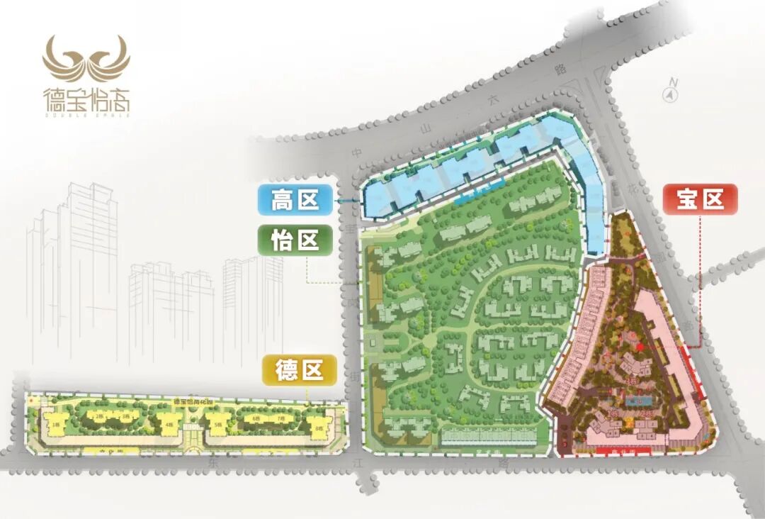 【德区】:由创新创意文化·家与创意创业文化·街组成。文化街,发展“影视制作、教育培训、文化艺术、创意体验”等多元业态,招商进驻率已达70%,其中就有东映影视制作中心,2000㎡的体量,为影视行业发展提供广阔空间。后期招商,将着重引进复合型品牌书屋等文化类项目,浓浓的书香味。【宝区】:创新创意艺术·家,由3幢住宅、联排别墅和商业街组成。其中的商业街主要面向青年就业创业培训、博物馆、潮流艺术等领域,目前已建成开始招商,营造年轻时尚的气息。【怡区】:创新创意生活·家,高端住宅配套区。主打低密度品质住宅,以智能科技深植社区,定位都市精英完美之家。【高区】:创新创意创业·家,即德宝怡高商务区。该部分是德宝怡高积极配合市政府围绕“互联网+”、“智慧城市”、“大数据”等产业布局而打造。商务区总建筑面积13万㎡,聘请澳洲著名O·G·E团队设计,9至14层高低错落的主体建筑,从远处看就是一只蓄势待发的雄鹰。招商方面,除了前面提及的“500强”、“央字头”大咖,还涉及八大业态:智慧城市、互联金融、生物医疗、人工智能、信息技术、工业物联、智能家居、数字经济等领域。