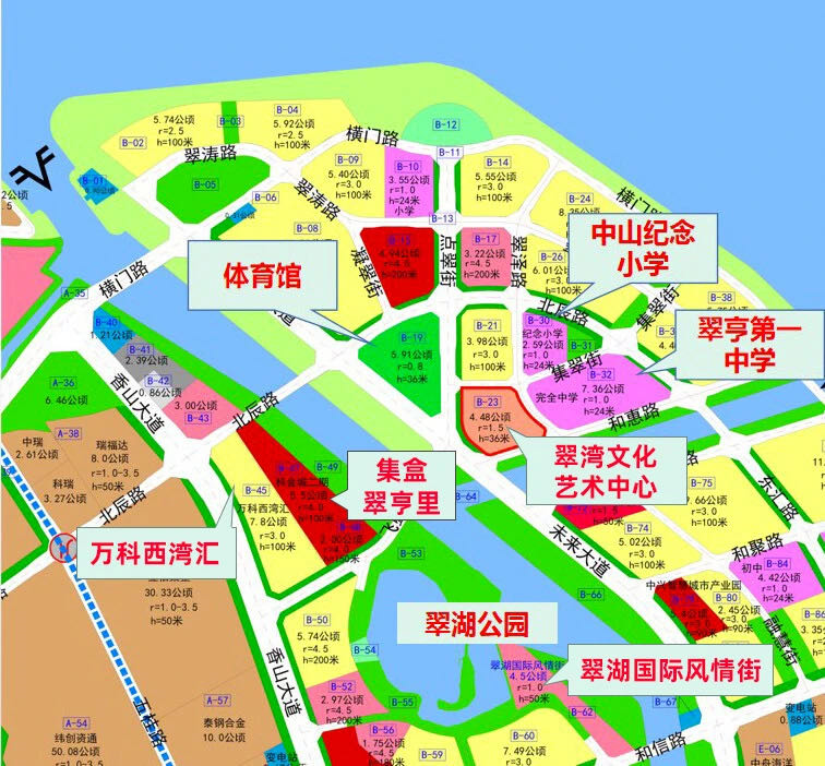 从图可以直观看出,以翠湖公园为中心,翠湾文化艺术中心、翠亨第一中学、中山纪念小学等配套环伺四周。这里所打造的北部综合性生活休闲中心,正形成一个完整的宜居生态圈,望前海生活圈逐渐成形。不出意外,在此次调整后,整个板块的进程将再进一步。