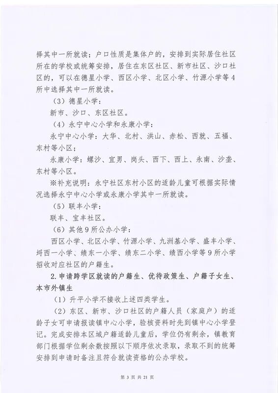 (一)2021年,我镇公办小学一年级计划开设44个教学班,可招生2245人。除新合小学外,每所学校不低于12%的学位用于安排积分生(具体根据学位安排情况调整)。