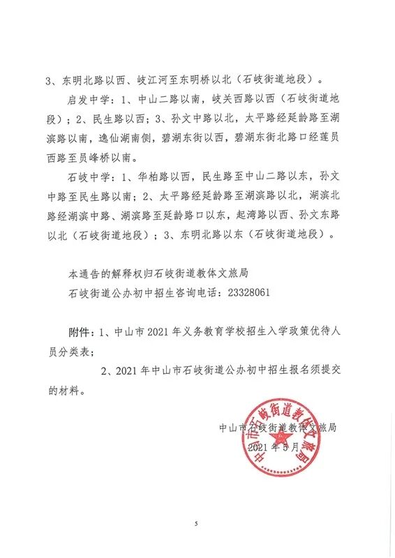 (1)居住在新合村、裕洲村的符合入读条件的学生安排在坦洲三中就读;