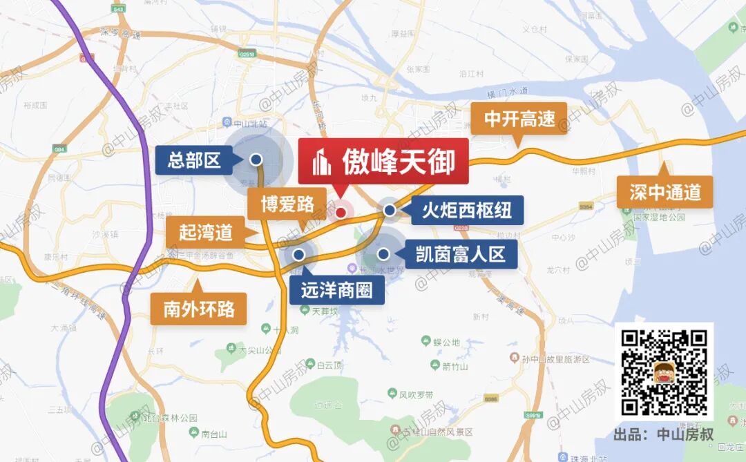 可以看见,中山最贵的新盘、二手盘,全部集中在这一条东西延伸的生命线上,是中山高知、高智、高收入人群的生活动线。
