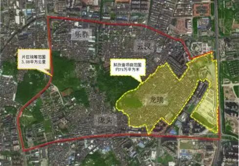 龙瑞片区旧改项目片区统筹范围3.08平方公里,拟改造项目范围约73万平方米。