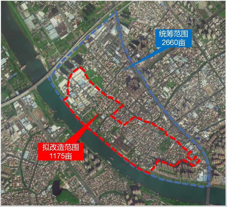 其统筹范围约为113.7公顷,即1705亩。但改造范围仅约11.3公顷,即167亩,东至海伦堡玖悦云府,南靠南区一小和鸿福翰城,西邻碧堤湾畔,北接白石南路。