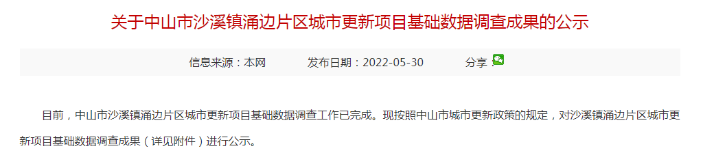 文件显示,根据国家、省市相关文件要求,石岐街道办事处组织启动南下片区城市更新项目社会稳定风险评估工作,于2022年7月26日至8月4日期间开展公众意见征求。