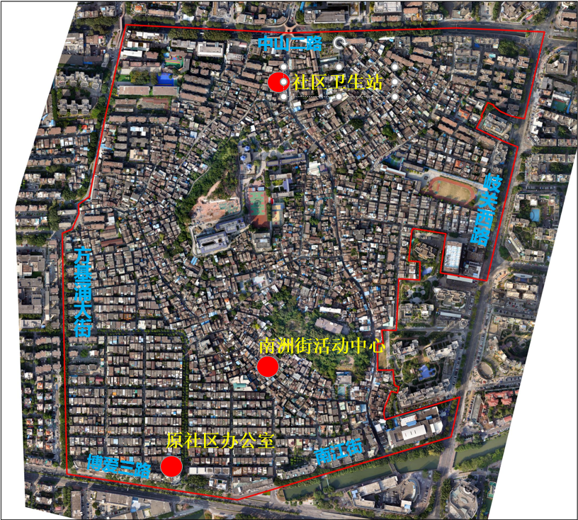 南下片区旧改范围东起岐关西路,南靠南江街、博爱三路,西至方基冲大街,北邻中山二路,涉及石岐迎阳社区、悦来南社区,面积约为72公顷(现状已经固化)。