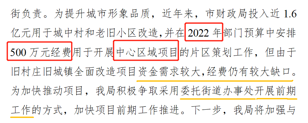 计划在今年部门预算中安排500万元经费用于开展中心区域项目的片区策划工作。