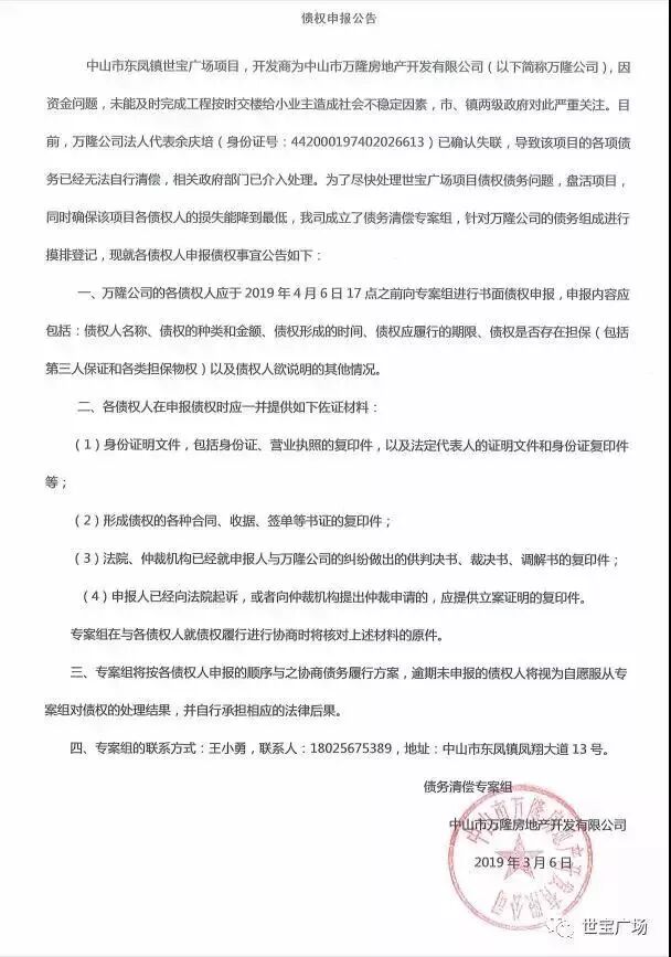 就在上周,中山市万隆房产公司(万宝广场开发商)重整案终于有了新进展,全体债权人及出资人均高票表决通过重整计划。
