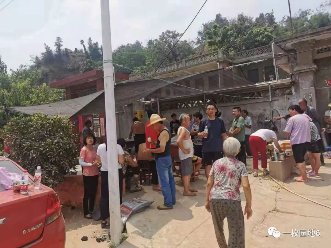 我叫小刘停车,一同下去问个究竟。村民见我们车上挂着“一枚园地心系河南灾区”的红布条幅,围拢来热心地告诉我们,这里是竹川村三队(组),大雨洪灾后停电停水,水井也冲坏了,大家没地方吃饭,侯队长做善事,给大家管饭,这已经是第三天了。