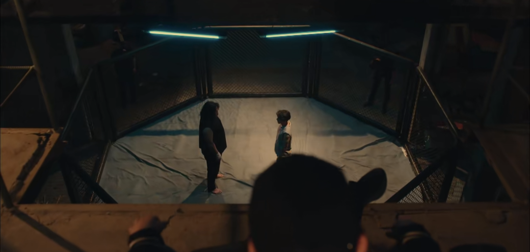 俯角与仰角镜头的转换,显示至高无上的地位。花钱赌人的生死,最近的《我是遗物整理师》中也出现了地下黑拳的情节,对比之下,那边是平民的修罗场,双方拳手都被压注,而这里简直是“王”的斗兽表演。