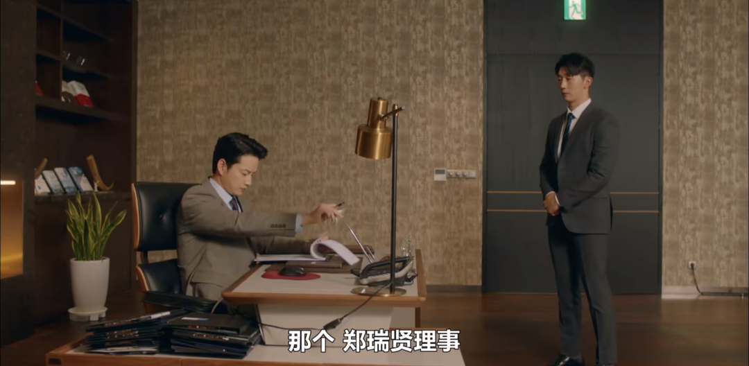 下图瑞贤坐在位子上,玻璃映出圆形灯的影子,刚好落在瑞贤头顶正上方。“欲戴其冠,必承其重”,对应瑞贤对任何事都强调“负责”的原则,让她有足够的资格成为枭远真正的会长。