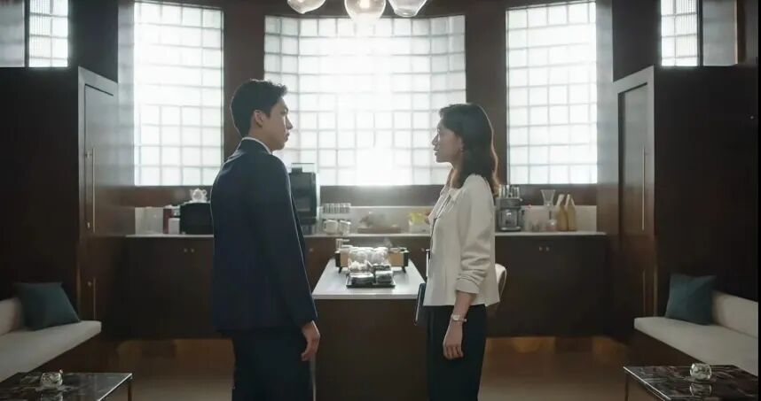 我认为权敏宇心理转变的背后,并不是“潦草地用爱解决问题”的叙事,当秀妍在法庭用英禑的论点辩论、无视上司时,权敏宇站了出来,和秀妍站在同一边,做出了最后的辩论,这一幕让秀妍第一次对他刮目相看。
