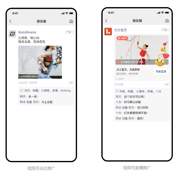 动态推广和直播推广的广告场景都不在视频号板块内,而在朋友圈信息流、公众号文章内、小程序产品广告等其他场景。更丰富的广告场景有利于铺开推广范围,不过相应的又比较难应用效果营销的方式,比较适用于品牌推广。