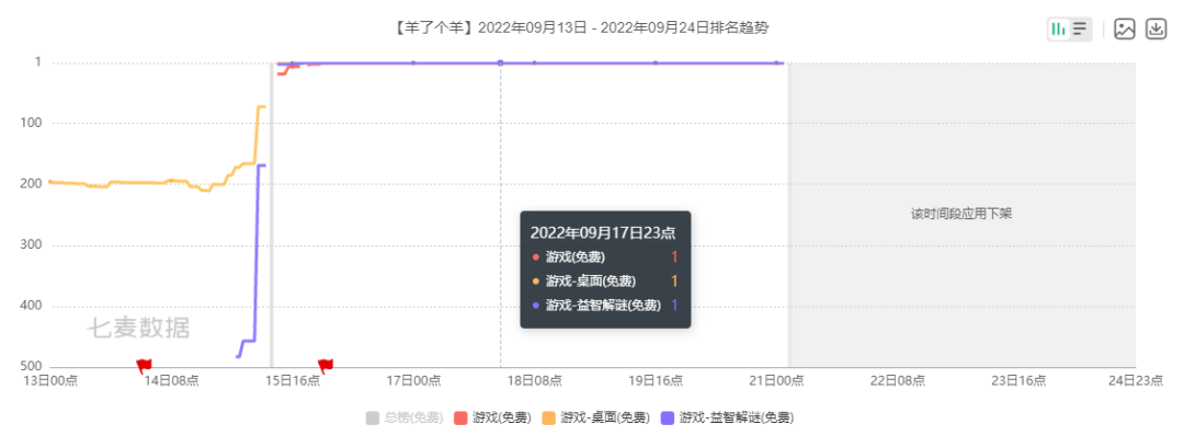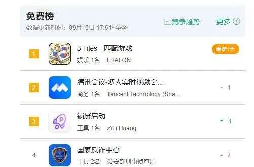 比较意外的是,《羊了个羊》曾被网友质疑抄袭的对象《3 Tiles》,也因为《羊了个羊》的热度以及相关的质疑而得到了网友的关注,一度被从榜外拉到了免费榜榜首。