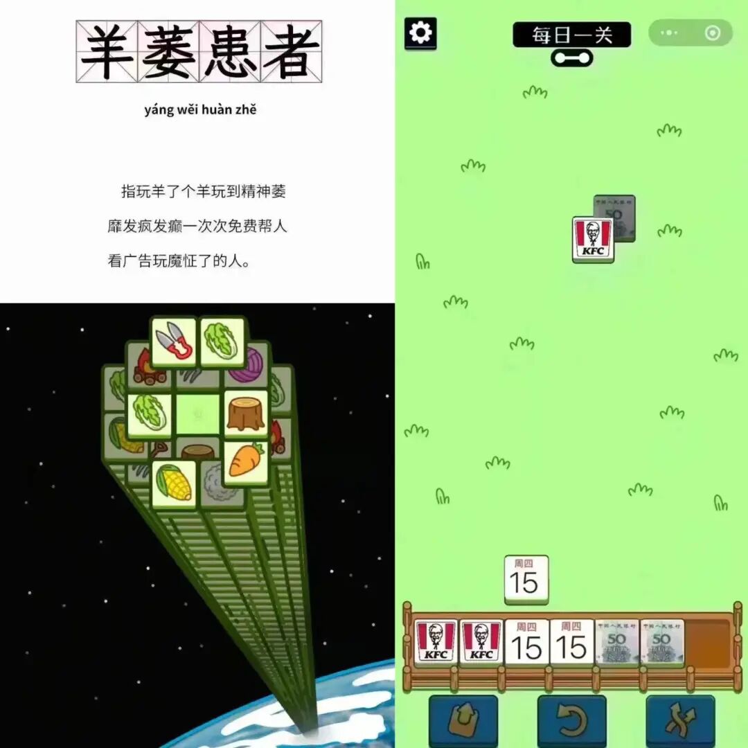 在《羊了个羊》人尽皆知的情况下,大众也乐于围绕着这一新热点整活。一方面,关于游戏的梗图层出不穷: