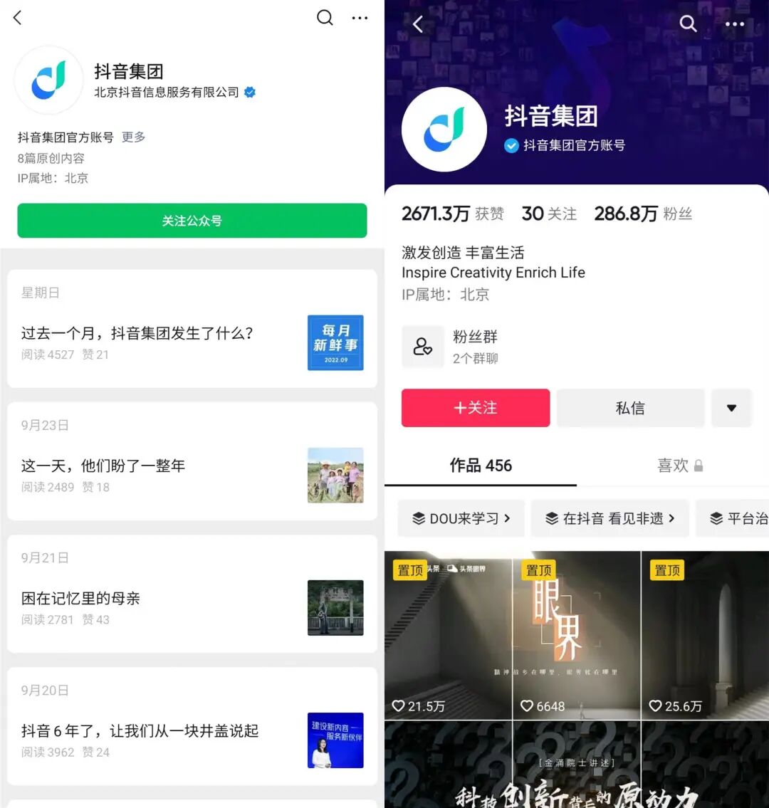 除了更名以外,抖音集团也上线了新版LOGO,抖音集团在其抖音、微信公众号的账号头像均已换成新版LOGO。