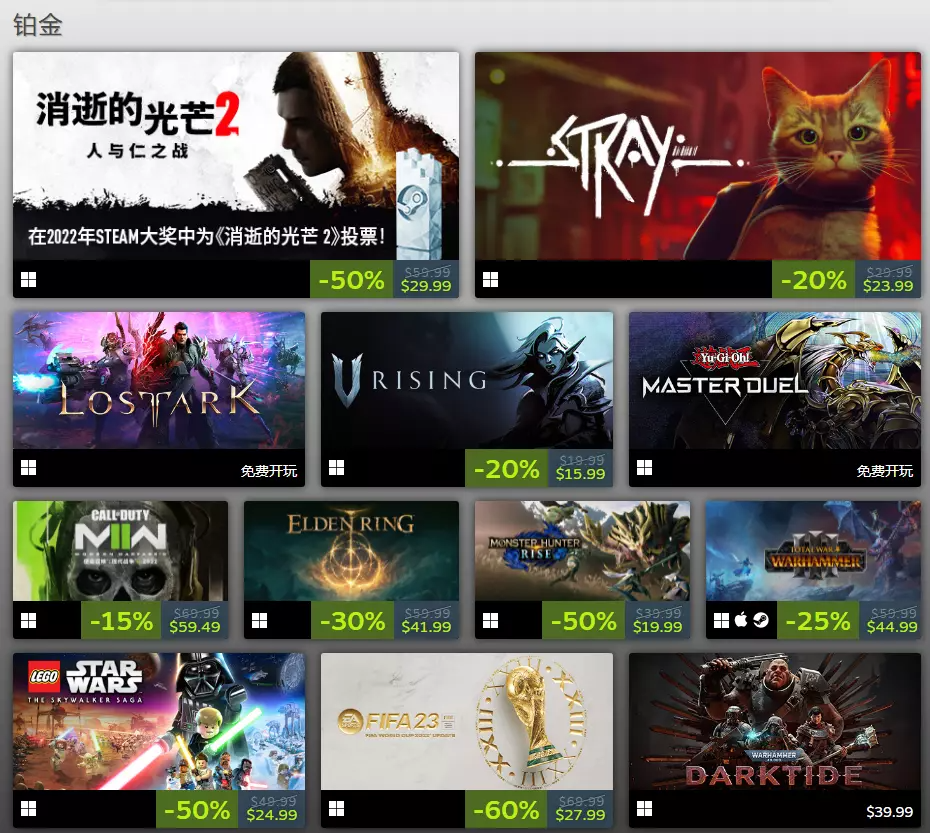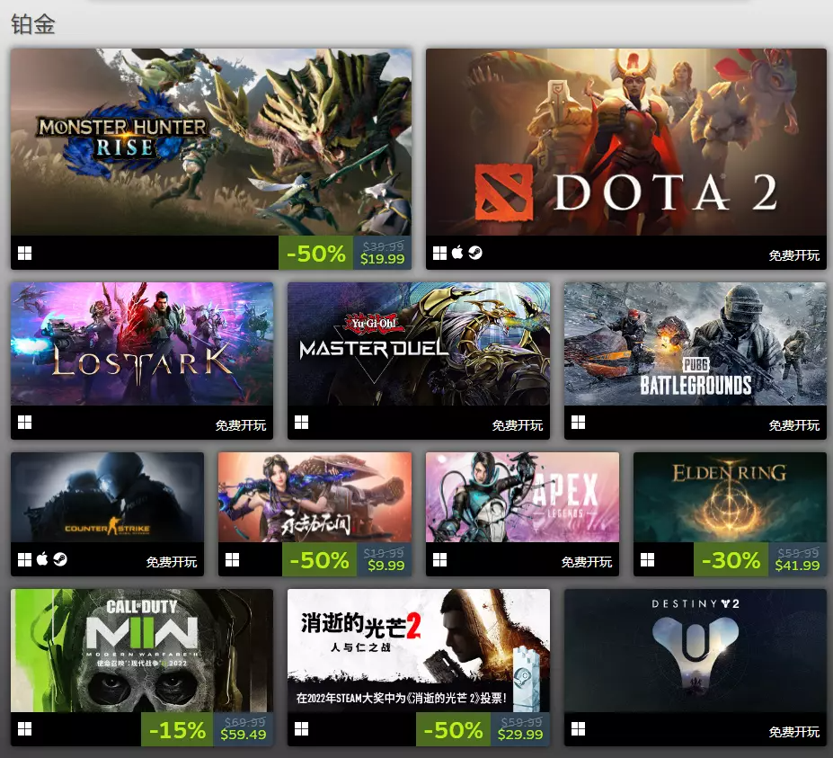 Steam公布2022年最佳榜单,《永劫无间》连续入围畅销游戏铂金阵容