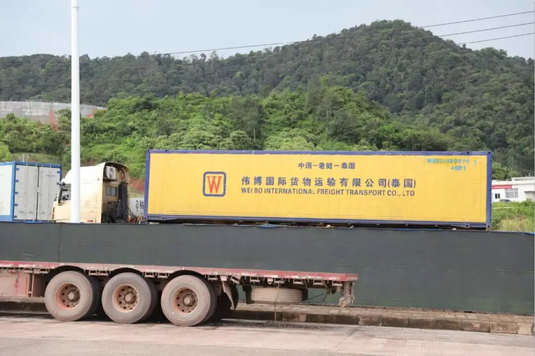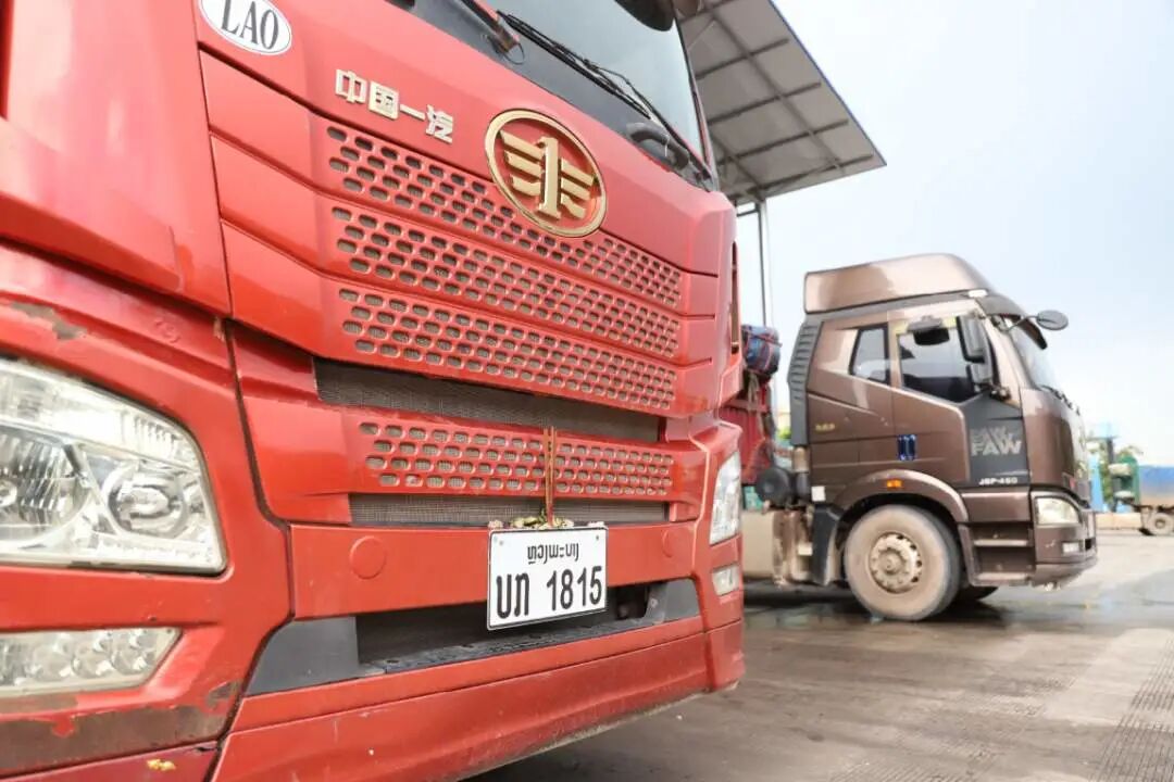 一眼望去,磨憨口岸综合提升改造项目建设有序推进;一辆辆印有“中国-老挝-泰国”字样的集装箱货车在小镇穿梭;货场内,几辆老挝牌照大货车正在装载货物……