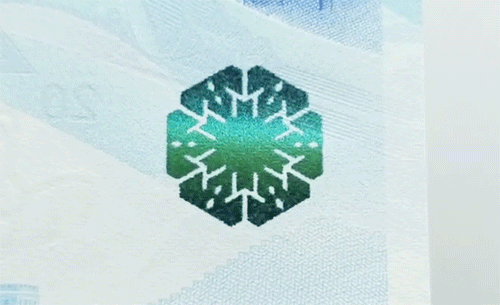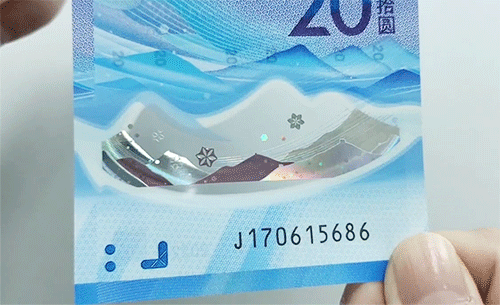票面的“乐谱”图案在蓝色和绿色之间变化,