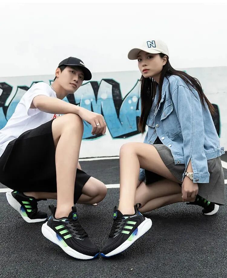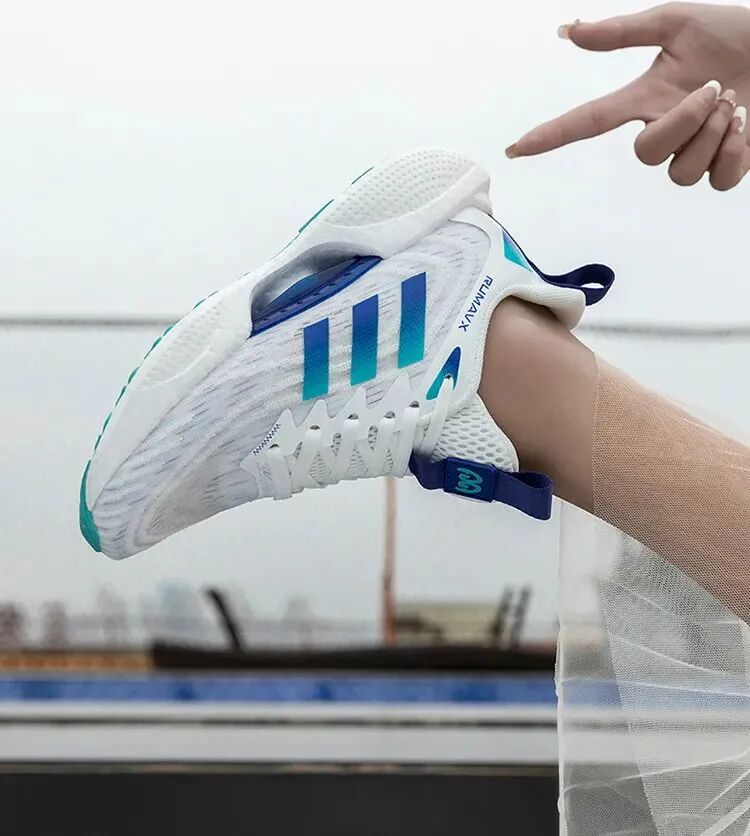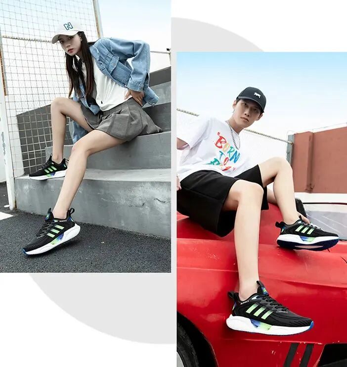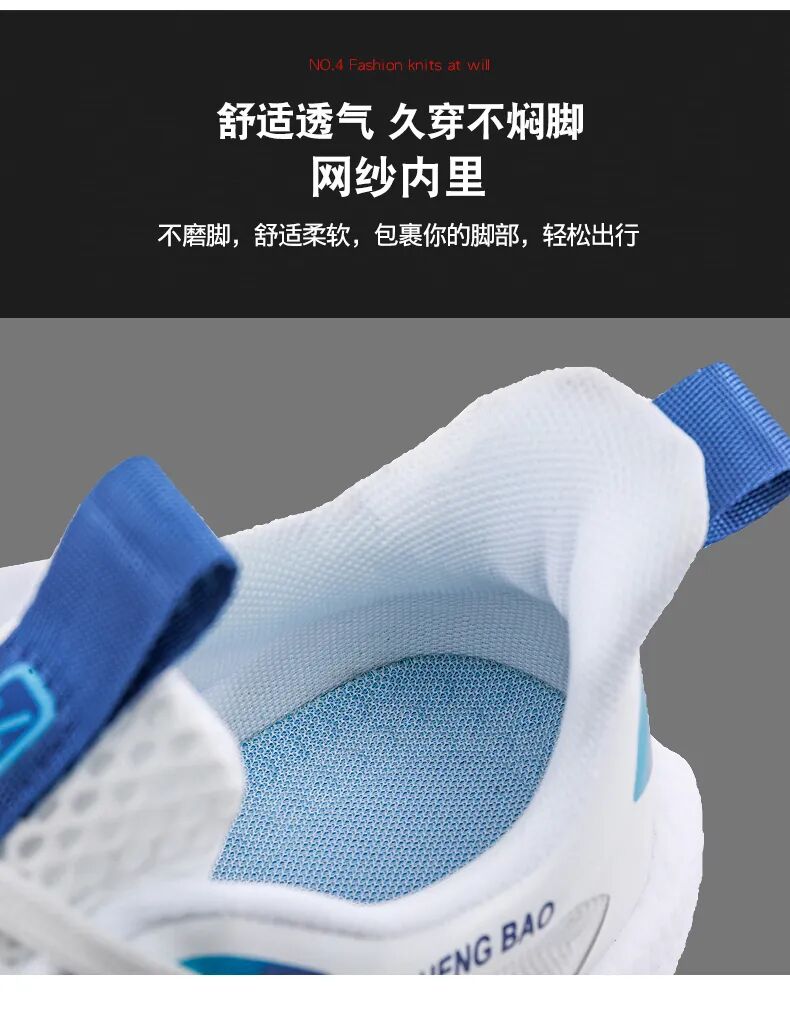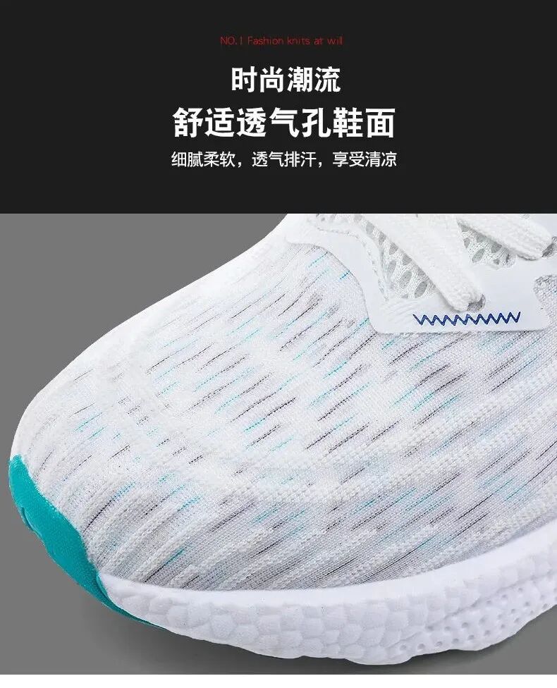 4、鞋面双面材质,亲肤网面+透气纱贾,双脚不积蓄热量,让你步步生风。