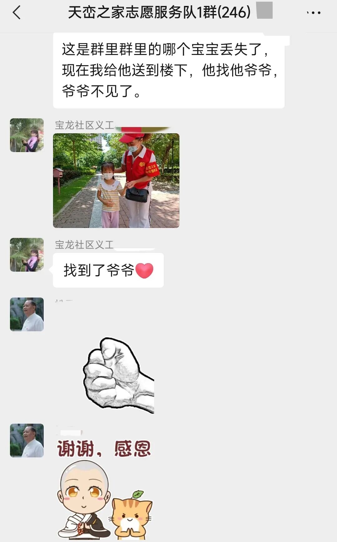 9月4日上午,志愿者巡查发现并帮助了一个迷路的小孩顺利找到家人,志愿者们用行动守护一个个家门,贴心保障着群众的有序出行。