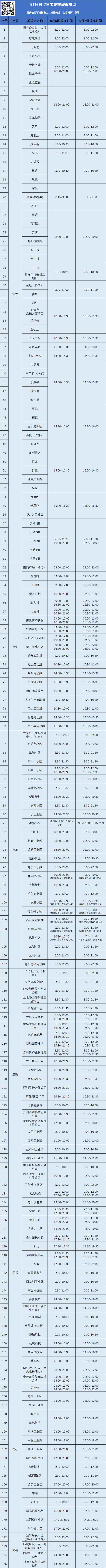 宝龙共设175个免费核酸采样点