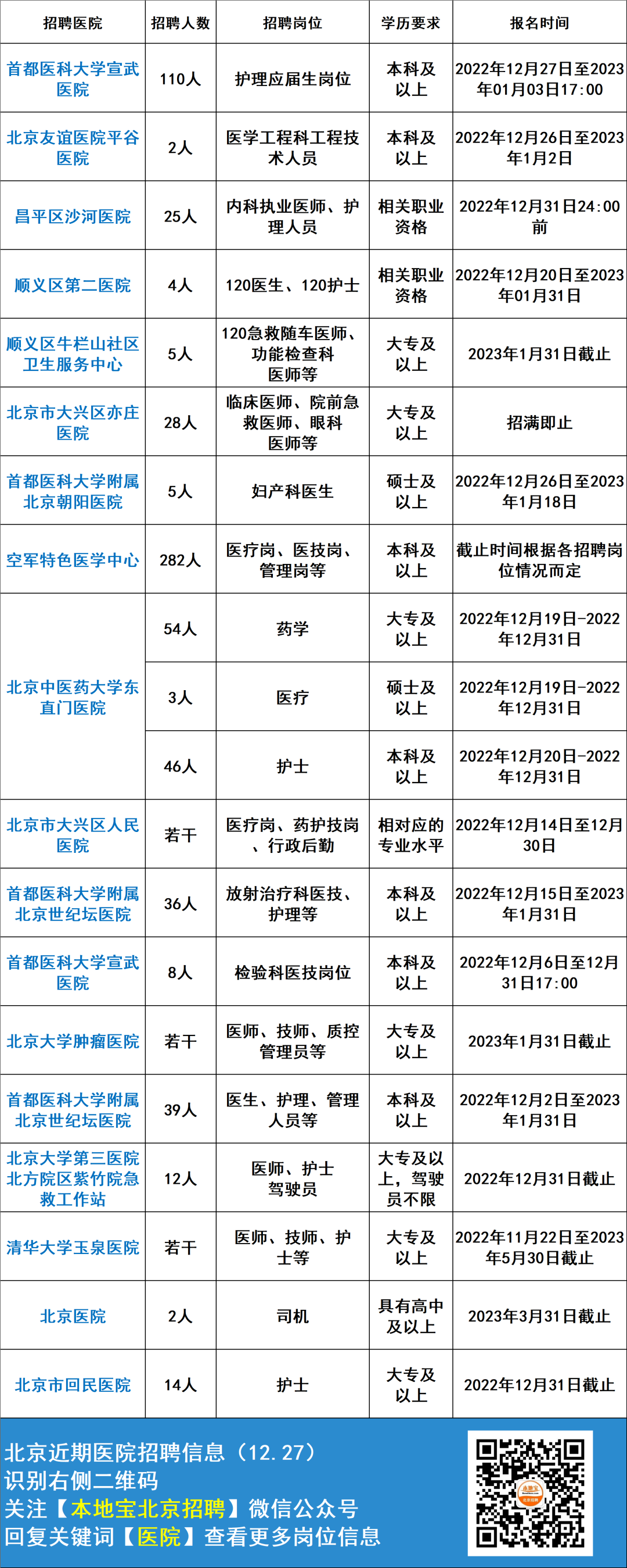 回复【医院招聘】获北京各大医院招聘及报名方式