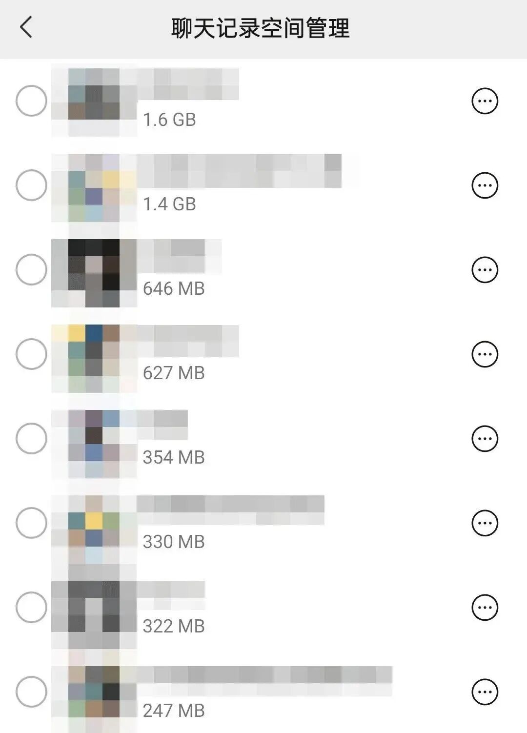 另外,随着微信使用时间的增加,我们的聊天记录也会占用大量的存储空间,点击聊天记录右侧【管理】,就可以根据聊天列表快速清除空间。