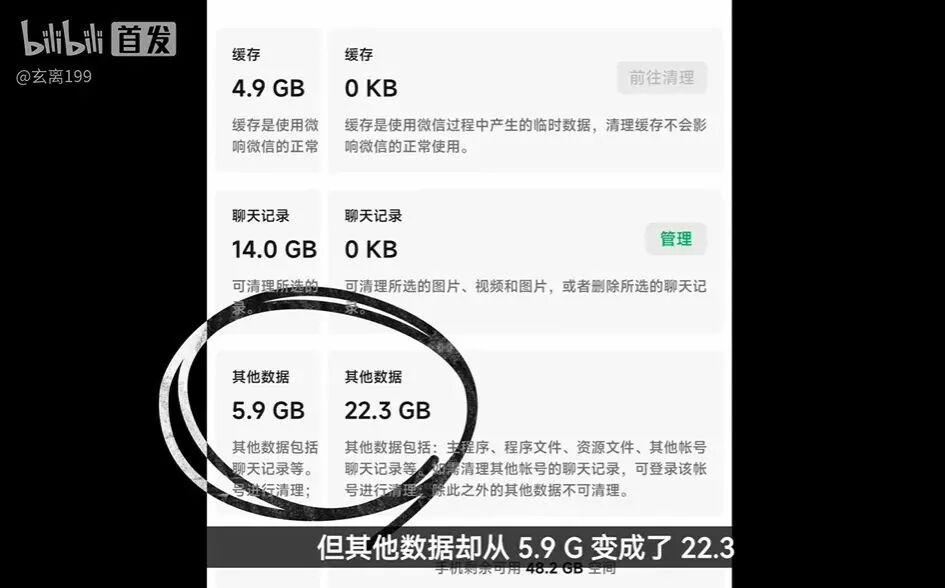 继上次 B 站 UP 主分享了“微信安装包大膨胀”之后,又有 B 站 UP 主“玄离199”花上百小时,找到了微信不能清理的“其他数据”存了什么。