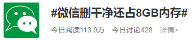 今日,关于#微信删干净还占8GB存储空间#的话题引发网友热议。