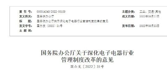 日前,国务院办公厅发布了《关于深化电子电器行业管理制度改革的意见》。意见提出,改革完善电信设备进网许可制度。动态调整实行进网许可制度的电信设备目录,11种电信设备不再实行进网许可管理。