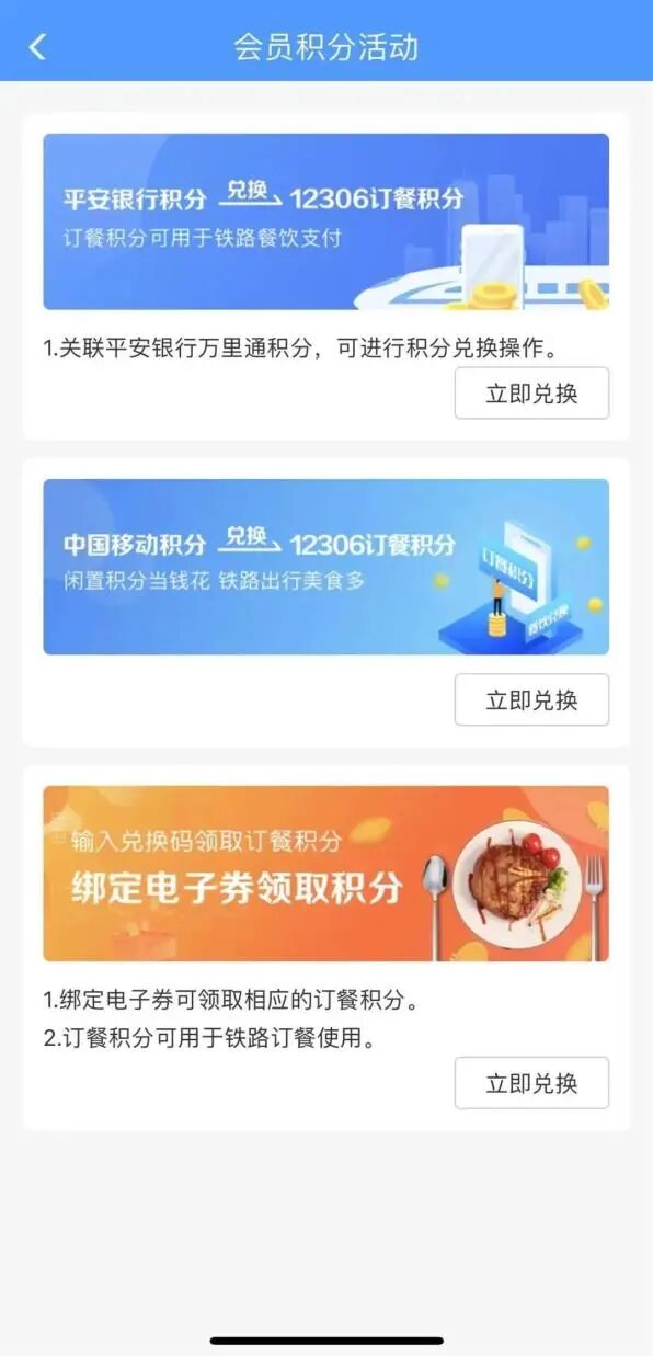 近日12306 APP升级后,在乘车积分的基础上增加了“订餐积分”功能,支持旅客兑换订餐积分,兑换后的积分可以在餐饮业务中进行部分餐品的消费。