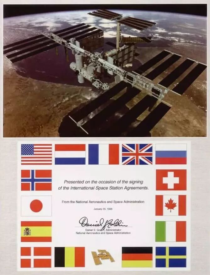 该空间站以美国和俄罗斯为首,包括加拿大、日本、巴西和欧空局(11个国家,正式成员国有比利时、丹麦、法国、德国、英国、意大利、荷兰、西班牙、瑞典、瑞士和爱尔兰)共16个国家参与研制。