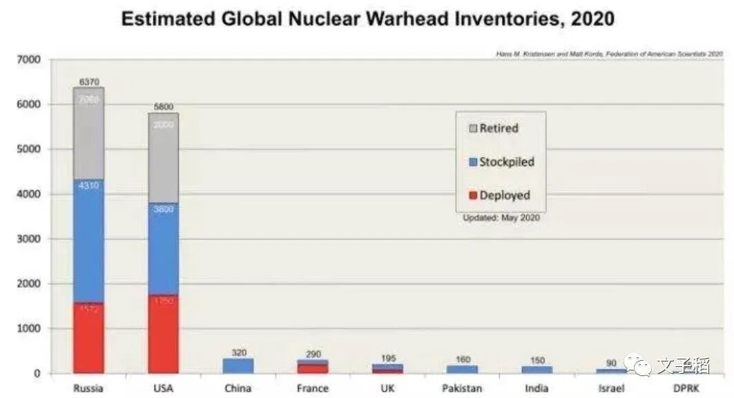 所以,一个跪着的人,看着你竟然站着,就会露出毒怨的目光。这个让我们不要自己吓自己的律师,绝对没想到,一年之后,作为“五眼联盟”之一的澳大利亚,即将在美英支持下拥有核潜艇大杀器。有没有想过,如果效果甚好,或者国际社会反击的力度不够,下一个拥有核潜艇的会不会是加麻大?或者会不会是日本?甚至印度?一年前,文子稻就预测如果全面扼制手段用尽,依然无法围堵中国的话,美国的下一步就剩核讹诈这一招。下图是世界核弹数量统计,美俄的核弹头数量都是中国的20倍!尤其是,美国这些年将核武器战术化、小型化后,更是防不胜防。