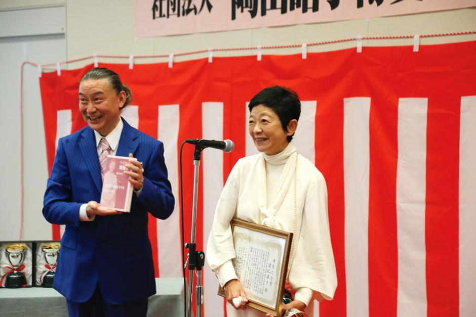 接下来,奥运体操冠军塚原光男携家人上台领奖。早在中日邦交正常化之前,塚原光男就以体操为媒介推动了与中国的友好交流。2008年北京奥运会时,吴汝俊先生还专门创作歌曲,为参赛的日本体操队加油。他希望,今后中日两国继续保持体育方面的交流,并祝愿陶山昭子早日康复。