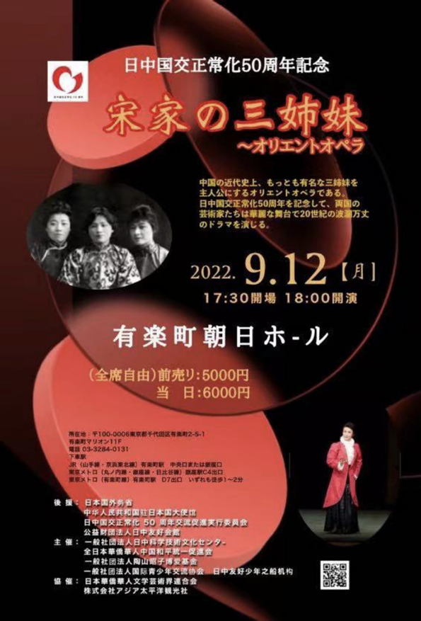 《日本华侨报》在现场还了解到,为纪念中日邦交正常化50周年,由吴汝俊主演的大型音乐剧《宋家三姐妹》将于9月12日在有乐町朝日大厦进行公演。该剧突出表现了手足情、同胞爱,中国女星许晴、旅日扬琴演奏家郭敏、宝冢歌剧团知名女星等中日艺术界名人都在该剧中担任角色,颜安出任该剧的艺术顾问,株式会社龙角散代表取缔役社长藤井隆太也友情助阵。共同期待演出的成功举行!