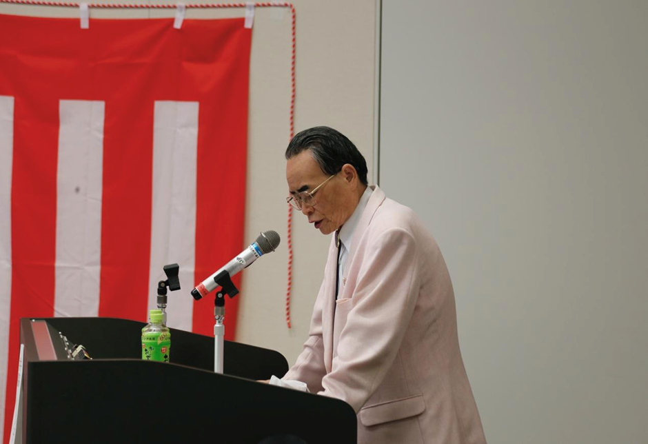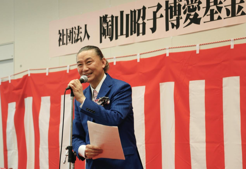 艺术大师、陶山昭子博爱基金会代表吴汝俊致辞。他说,妻子陶山昭子虽然因病遗憾未能出席,但她一定非常高兴,并对大家长年来对架设日中友好民间桥梁的、和平和爱的事业的支持,表示发自肺腑的感谢。