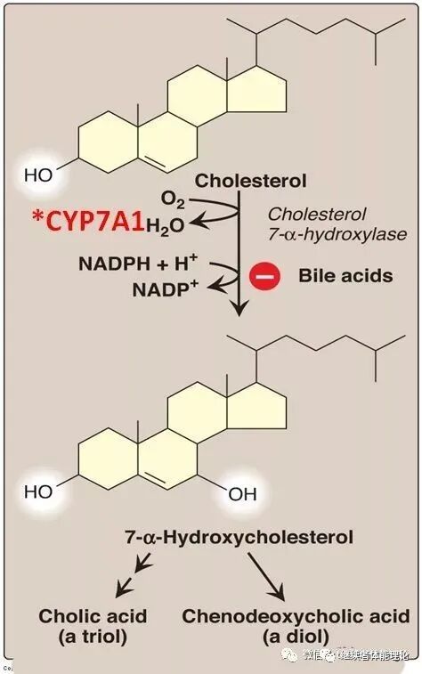 注意cholesterol7a-hydroxylase那个反应上的“NADPH+H →NADP”。