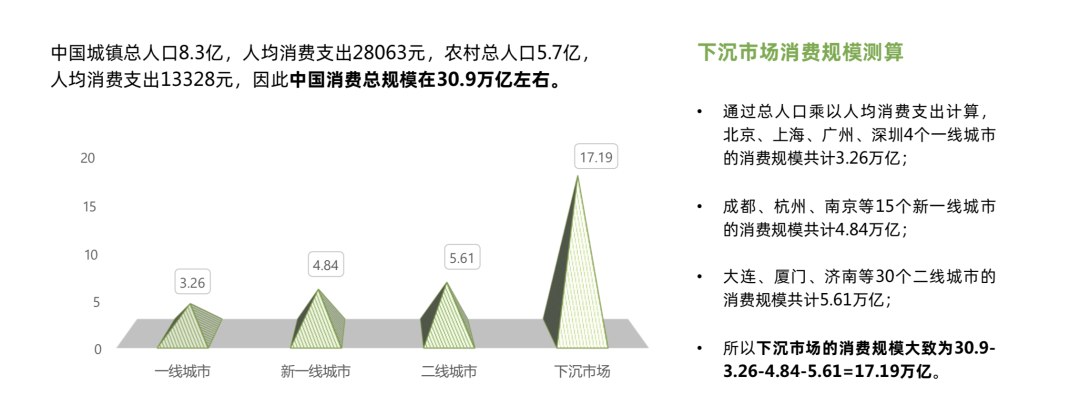 因此,下沉市场本身的范围不重要,企业想要接触多大范围、什么特征,有哪些用户群体的存在的市场,才是弄清楚「下沉」的关键。