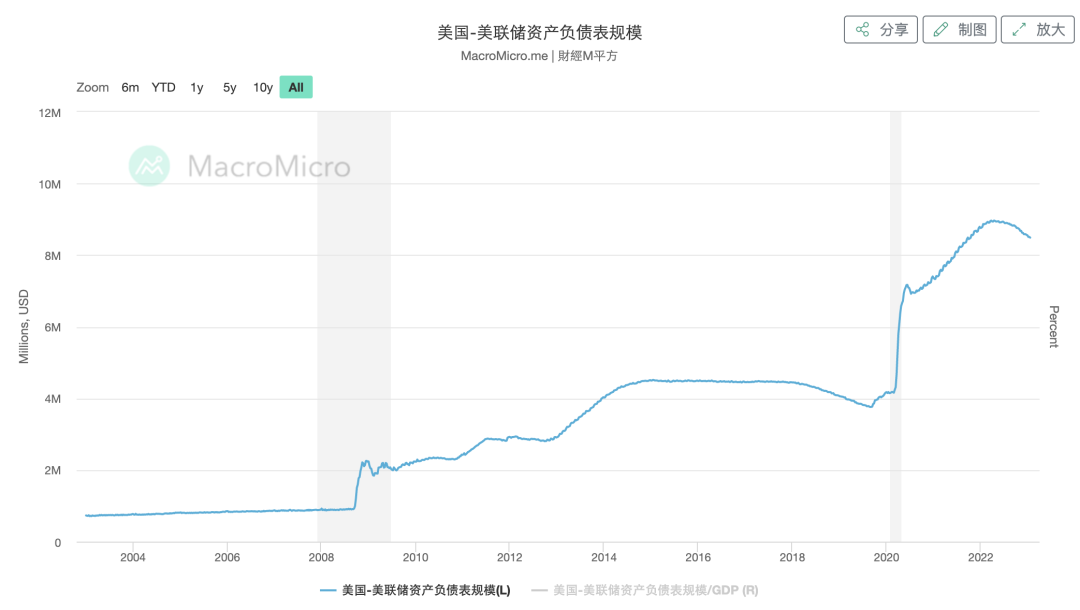 2023年2月9日,美联储更新数据,其资产负债规模为83988.84亿美元