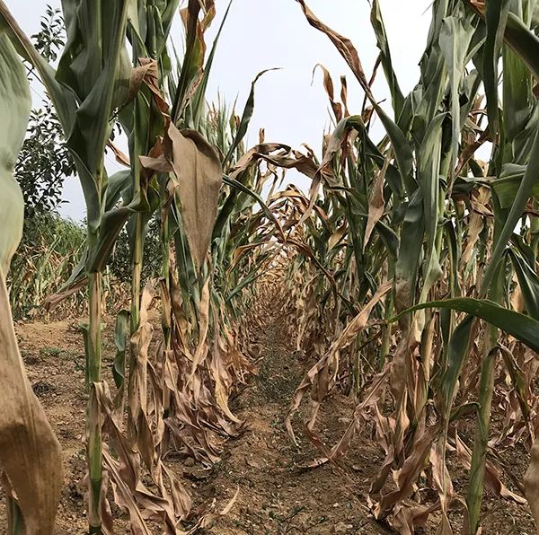 7、8月正是玉米生长的时节。但在栖霞,沿途所见的玉米田成片枯萎,而其他零星的作物如花生和大葱本来还算耐旱,如今也有气无力地倒伏在地里。