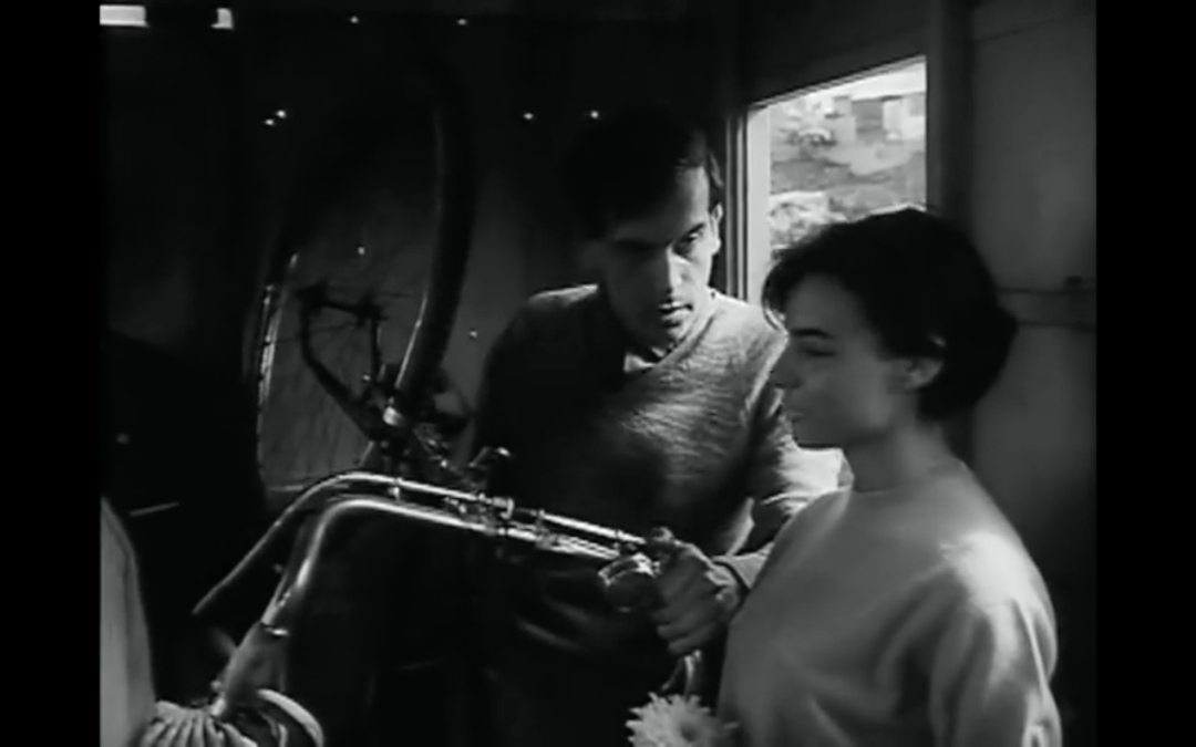那位抬自行车的男子和漂亮的女孩可能只是各种各样的乘客当中的代表,镜头一直对着他们“linger”——就是在他们身上不断地游走,不舍得离开。