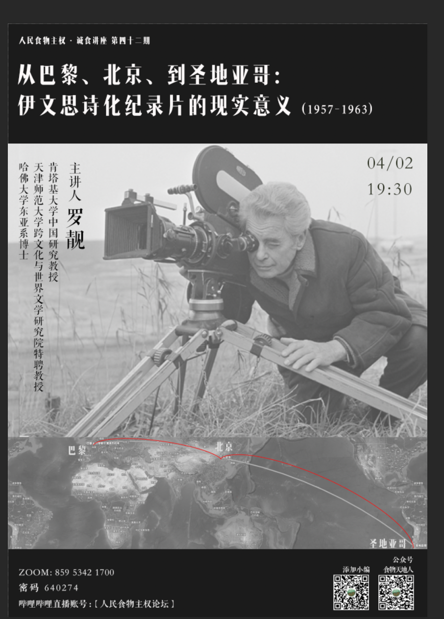 大家晚上好!欢迎大家参加第四十二期人民食物主权诚食讲座。首先给大家介绍一下今天的主讲人罗靓老师。