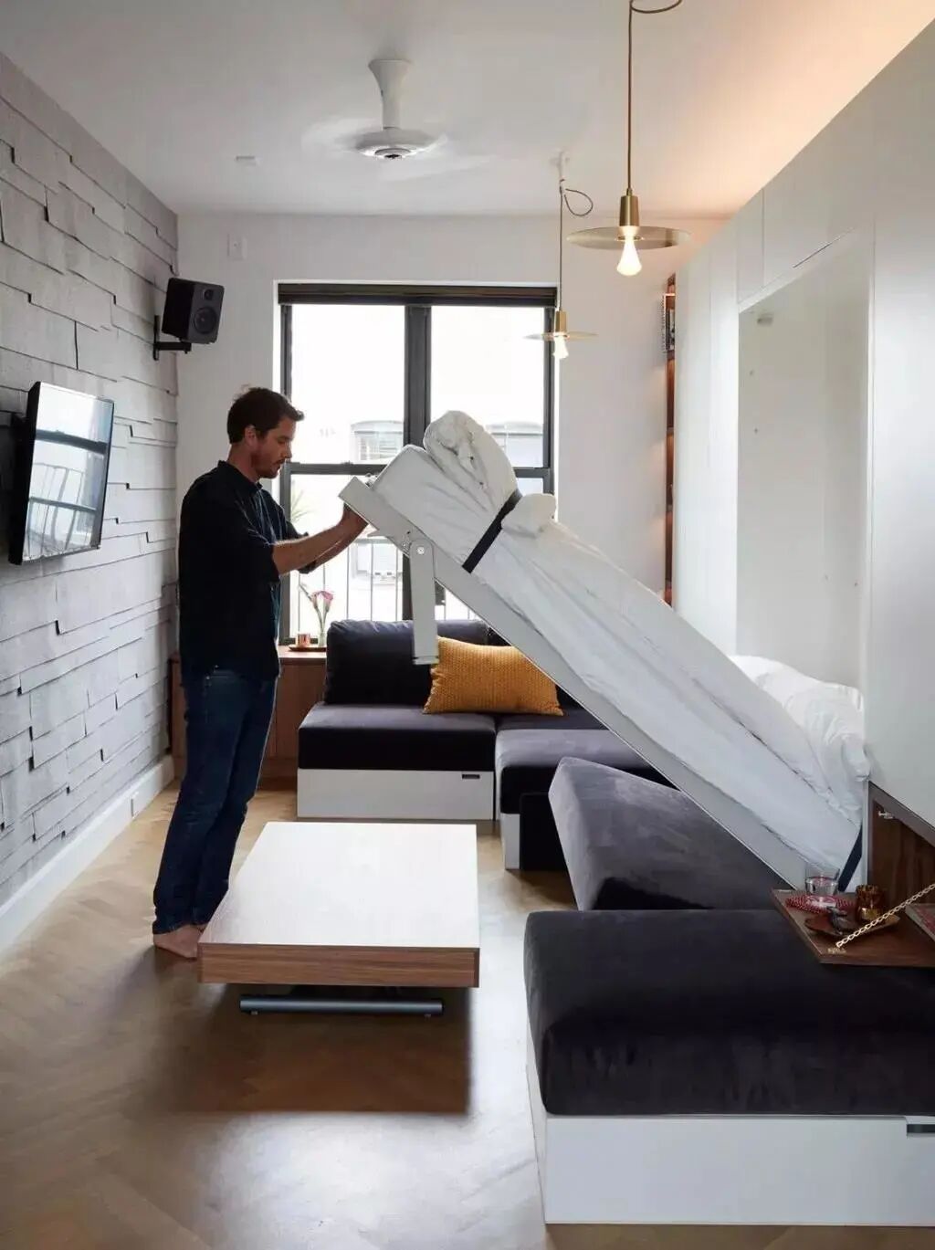 简单来说,就是隐藏在墙上的床,颇受小户型业主的青睐。只是,往下放的时候担心被砸到,睡上去的时候,又担心小细腿支撑不住,甚至弹回去......