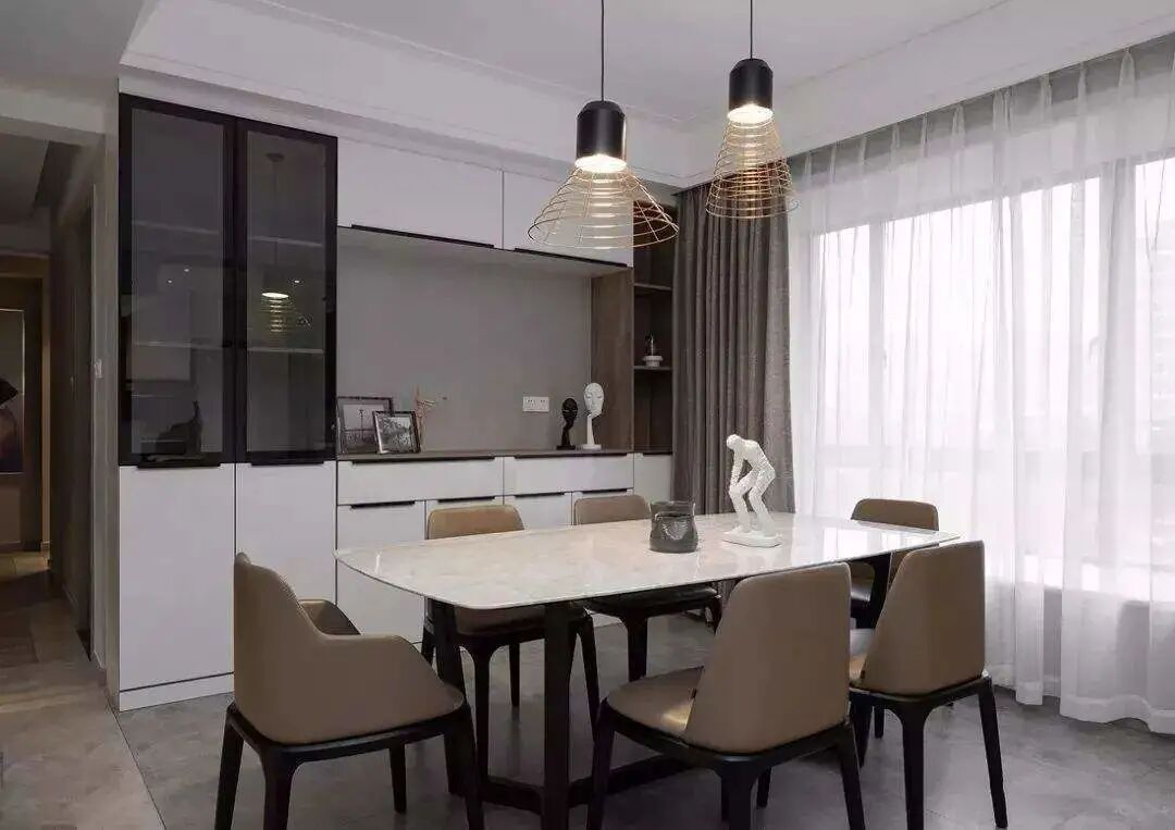 如果想在客餐厅摆放酒水,那么在餐厅打个简约的酒水收纳柜或者餐边柜就足够了。