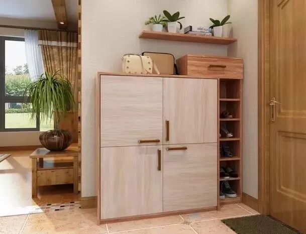 相比起来,采用定制的通顶式鞋柜或组合柜就更加整洁有质感,收纳空间也更大,还能充分利用空间!